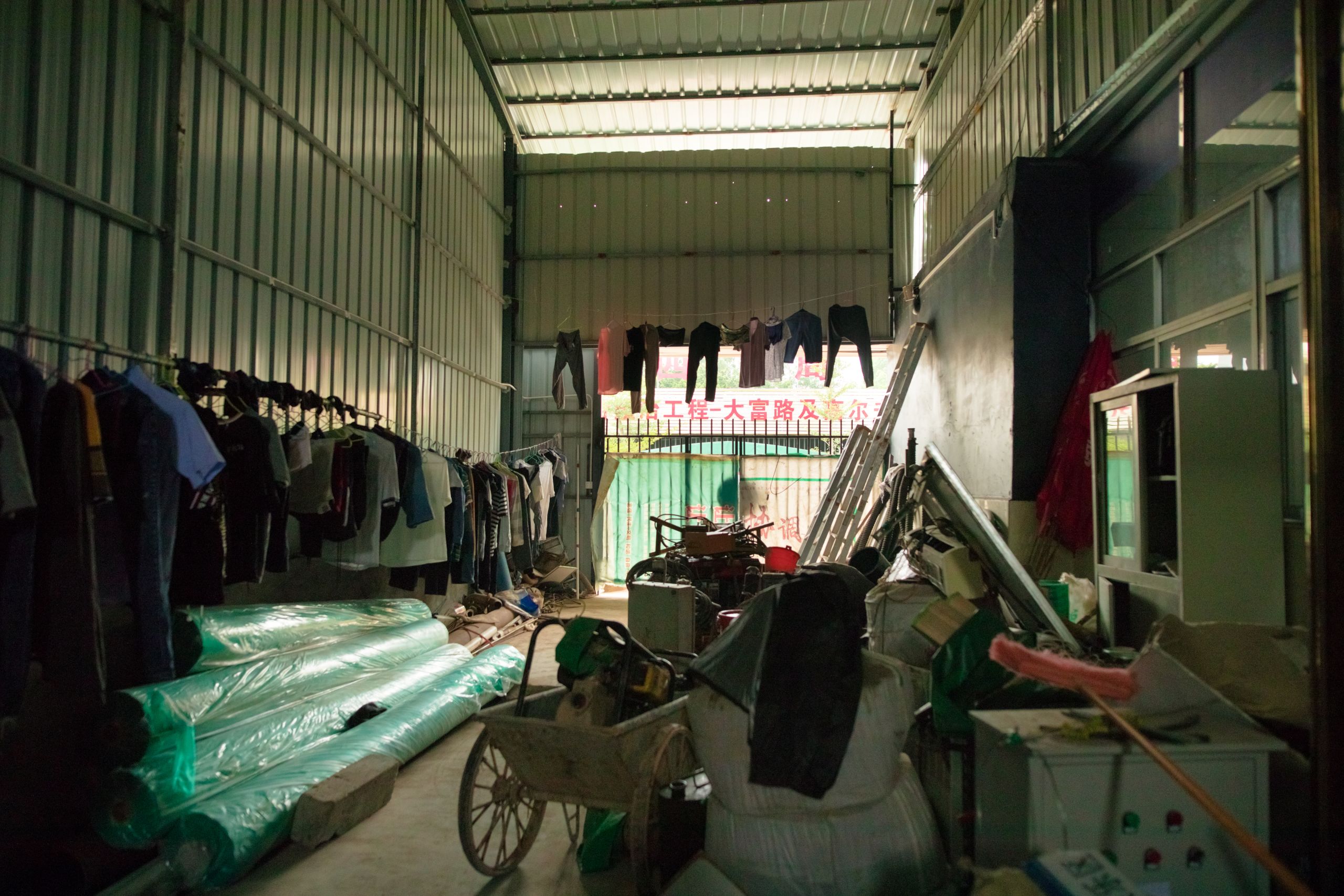 For rural-urban migrants working in construction, it is most common for the company to provide dormitory housing for the duration of the contract. This dormitory in Longhua is a single-floor building across a parking lot from a set of multi-level management offices. Inside the sleeping quarters, as many as 20 wooden beds fit inside a room, though some are utilized as storage shelves. While there seems to be little ability or regard for protecting private belongings, we spot packs of cigarettes strategically hidden inside half-cut iced tea bottles.